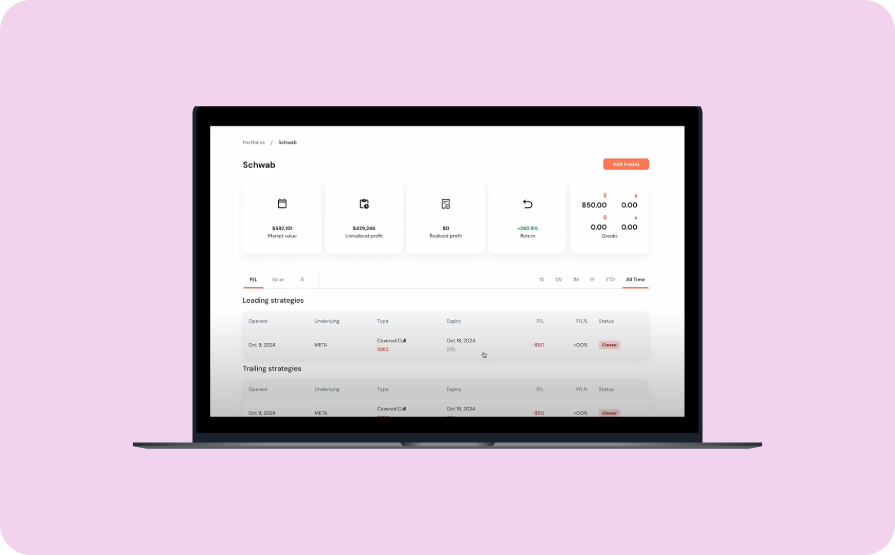 Using React and TypeScript, we built a fast, scalable interface where users could simulate trading strategies and place real-time orders via Tradier API integration. Every feature — from strategy visualization to live execution — was designed for clarity, speed, and reliability, making the platform feel like a true co-pilot for modern options trading.
